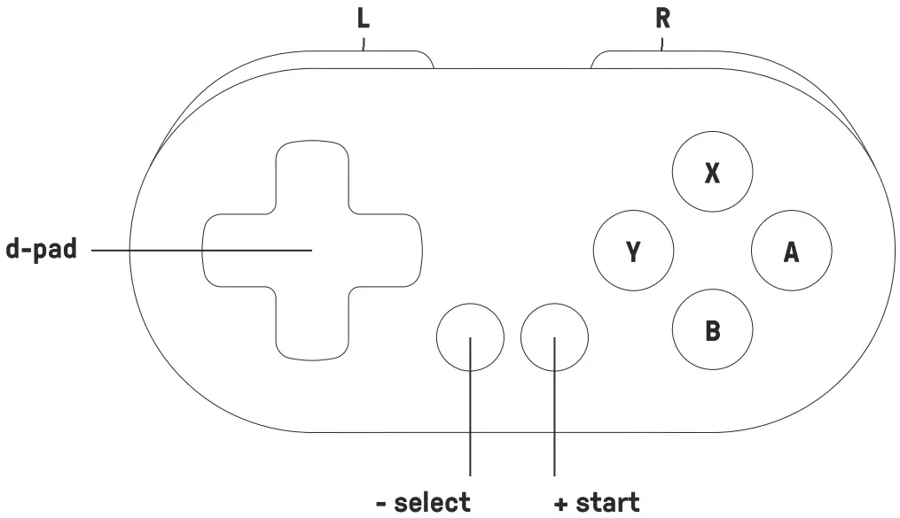 8Bitdo SN30 Pro / SF30 Pro numbered diagram