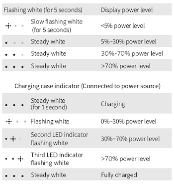 Charging case indicator (When opened or closed)