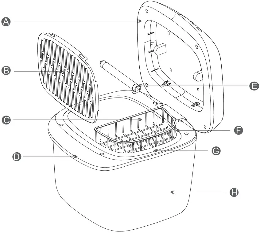 - Unpack and remove the product and check the accessories list. (user manual x1, UV Steriliser, accessories basket x1, spare filter x1)
