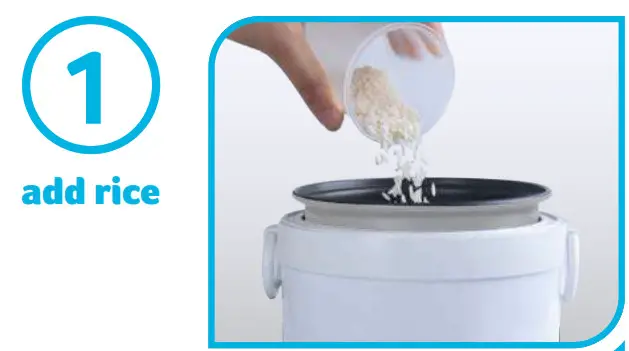 Use the cup provided to add rice (min 0.5 cup – max 1.5 cups) to the mini rice cooker. The Rice amount will double once cooked.