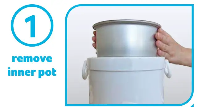 Remove lid and inner pot from mini rice cooker after use and the inner pot has completely cooled.