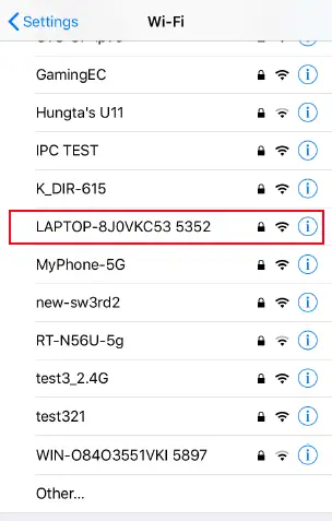 2. Mobile device (g): Connecting to the laptop via mobile device and this time should connect to the laptop.