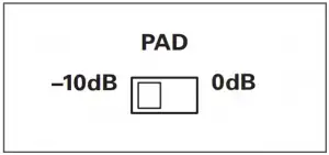 If audio input exceeds the maximum input sound level, set the pad switch to -10 dB.