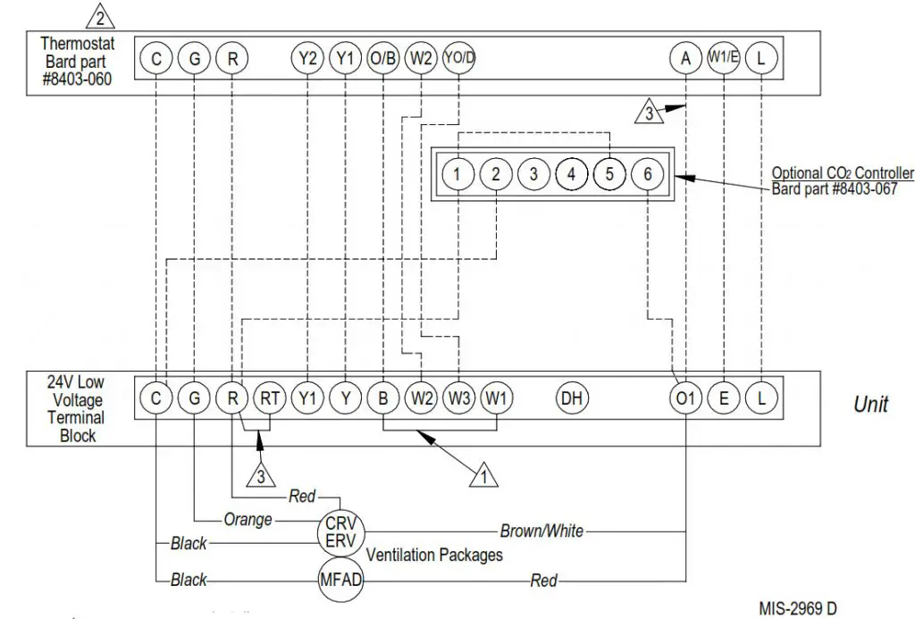 “O1” terminal is the ventilation input. This terminal energizes any factory-installed ventilation option.