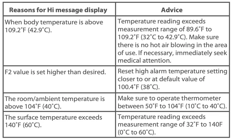 Note: High temperature alarm default setting is 100.4˚F (38˚C).