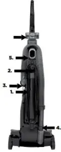 3. Check to be sure the handle is fitted to the vacuum body. If there are any gaps between