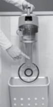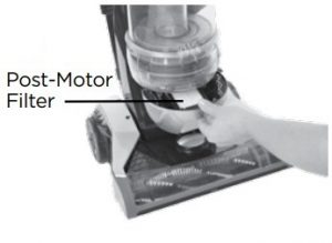 Note: The pleated post-motor filter may NOT be washed with water or detergent. If dust and/ or debris accumulates on the filter, gently tap the filter on the side of a garbage container.