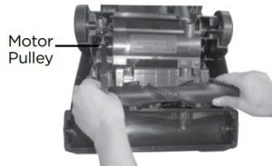 3. Place new drive belt over motor pulley and stretch other end over rotating floor brush in the space between the bristles.