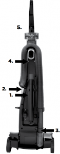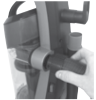 4. Line up tabs on the cuff of the hose with the notches on back of vacuum, twist hose clockwise to lock into place