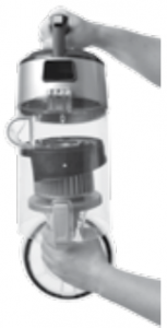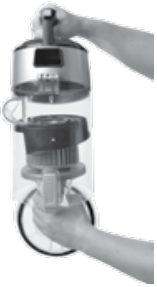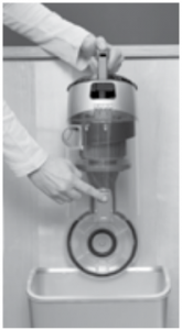 3. The inner cyclone may also be removed for cleaning. With the bottom of Easy Empty dirt tank open, reach up into the dirt cup and grasp the cyclone. Twist the cyclone clockwise to unlock and pull straight down to remove. Use the Lock and Unlock Icons on the tank to help guide the cyclone back in and lock it correctly. It is important to lock the cyclone back in correctly as it will impact performance and separation. The inner cyclone and dirt cup may be wiped clean with a damp cloth. Make sure all parts are dry before replacing.