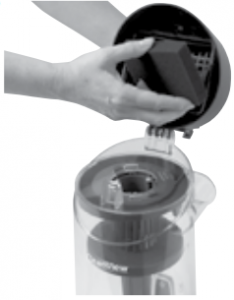 b. Remove the foam filter from the filter tray. In model 1328 Series, a second carbon filter is included in here. The filter tray is fixed in-place, but may be removed for cleaning by unscrewing the tray. The foam filter and tray may be hand washed in warm water with a mild detergent, if desired. Rinse well, then air dry thoroughly before replacing the filter. Make sure all components are completely dry before replacing. A second black odor-absorbing filter can also be found here. Replace this when needed.