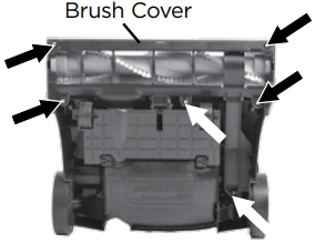 4. Place ends of rotating floor brush down into slots on sides as shown.