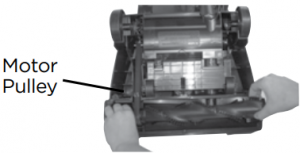 5. Turn rotating floor brush by hand several times in the direction of motor pulley. If properly installed, drive belt will center itself on rotating brush.