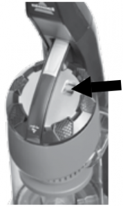 3. Check to be sure the handle is fitted to the vacuum body. If there are any gaps between the handle and the vacuum base, continue to push the handle firmly into the base until the handle is flush.