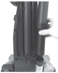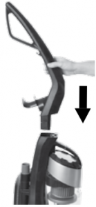2. Stand the vacuum upright and slide the base of the handle firmly into the opening at the top of the vacuum body.