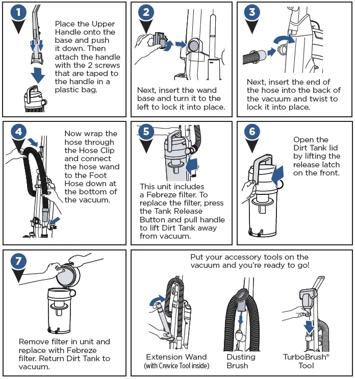 - This unit includes a Febreze filter. To replace the filter, press the Tank Release Button and pull handle to lift Dirt Tank away from vacuum.