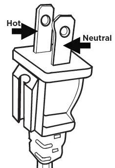 To reduce the risk of electric shock, this appliance has a polarized plug (one blade is wider than the other). This plug will fit in a polarized outlet only one way. If the plug does not fit fully in the outlet, reverse the plug. If it still does not fit, contact a qualified electrician to install a proper outlet. Do not change the plug in any way.