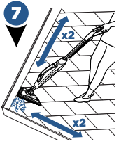 - For optimum corner cleaning, perform two cleaning strokes along each wall towards the corner to be cleaned.
