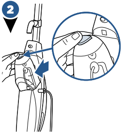 - Push the release button located on the bottom of the body of the unit and lift up to detach from foot.