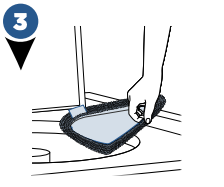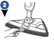 - Attach mop pad by wrapping around bottom of foot, making sure gray stitching is located on the front of foot and the Quick Grip Release Tab is located on the back.