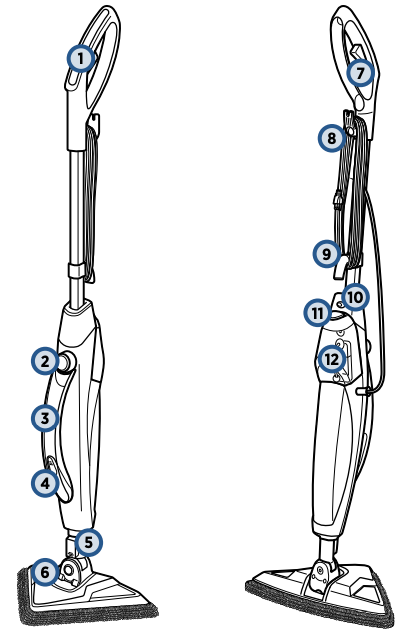 - When changing from mopping to the handheld feature, wait 10 seconds for steam to cool down.