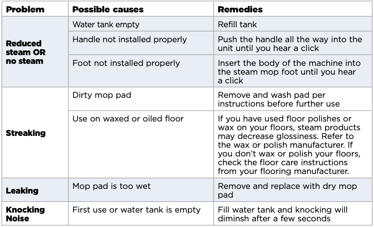 We love to clean and we’re excited to share one of our innovative products with you. We want to make sure your steam mop works as well in two years as it does today, so this guide has tips on how to use (pages 5-8), maintain (page 9), and if there is a problem, troubleshoot (page 10).