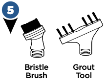 CAUTION: Before connecting or disconnecting a tool from the steam cleaner, make certain that steam is no longer coming from the nozzle. Rotate the unit slowly upward to a vertical position to allow any excess steam to release prior to attaching a tool.