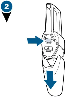 Find the Dirt Tank Release Button and press it to remove the Dirt Tank from the hand vacuum.