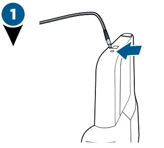 The charging port is located on the back of the hand vacuum handle. Plug the adapter cord into the opening.