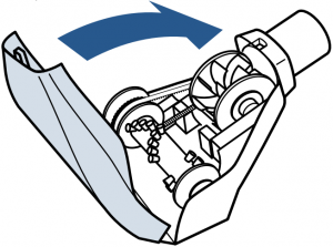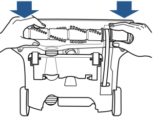 Replace brush roll and belt by looping the belt over motor shaft and brush roll. Line up the end caps and pull the brush forward into place, stretching the belt. Replace cover and screws.