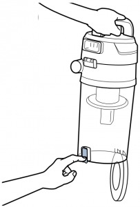 Press tank release button and pull handle to lift dirt container away from vacuum.