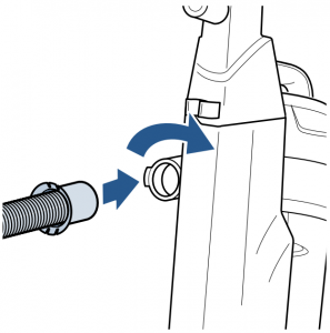 Next, insert the end of the hose into the back of the vacuum and twist to lock it into place.