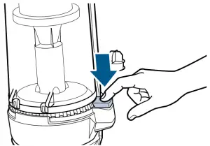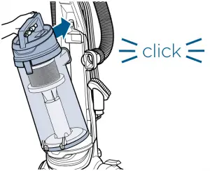 - Return tank back on vacuum and press firmly until you hear “click.”