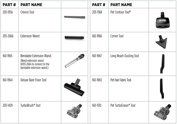 - Specialty Tool (Select models include TurboBrush® Tool or Pet TurboEraser® Tool)