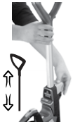 NOTE: The handle has two height settings. To lower or raise the handle, push the handle height adjustment button (designated by the corresponding icon pictured below) and slide the handle up or down until it locks into place.