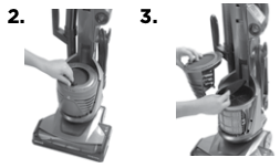 Upright – For storage and above floor cleaning with special tools.- Normal Cleaning – Step on the left side of the vacuum powerfoot and pull back on the handle to lower the vacuum. The icon pictured to the right indicates where to step.