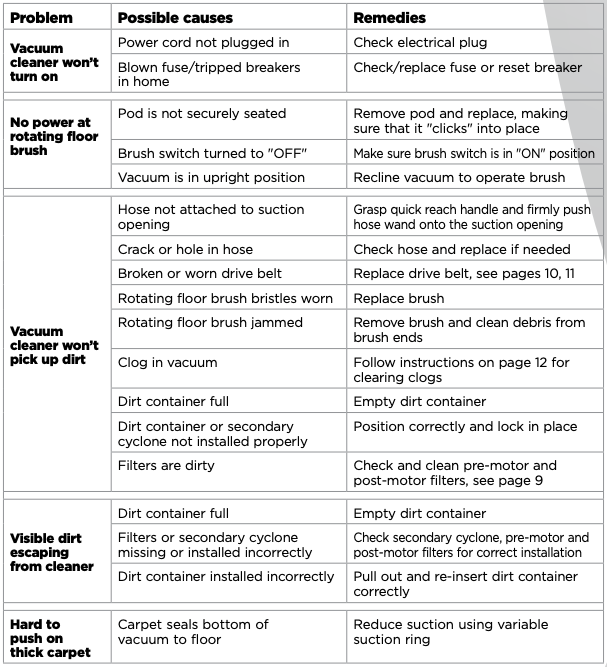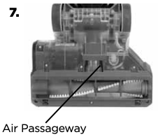 - If the low suction persists, follow the instructions for checking the rotating brush on page 10 and inspect the air passageway for obstructions.