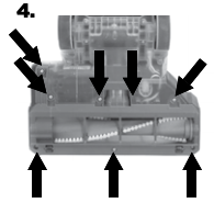 - Lift the rotating floor brush to remove. Clean strings, hair and other debris from the brush, paying special attention to the brush ends.