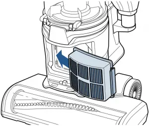 - Remove Pre-Motor Filters from top of Dirt Tank lid by pulling out.