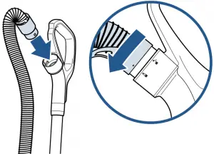 - Attach Stretch Hose to back of vacuum by twisting clockwise.