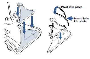 - Insert the bottom nozzle by aligning the slots into the corresponding holes & rotate nozzle upward to secure