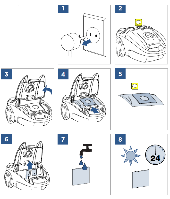 The Dust Bag is not seated correctly. | Open Dust Bag chamber reseat bag correctly. | |