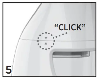 | Replace and turn top clockwise until the arrows align and you feel a “click”. Dry off excess water. Plug into the power outlet. Press the ON/ OFF switch to ON. |