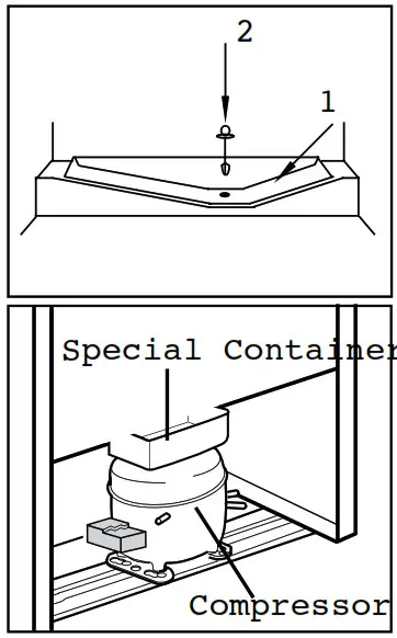 - Make sure that the defrost water pipe at the back of the product is fixed to the plastic evaporating pan on the top of the compressor, to avoid defrost water spillage on the floor.