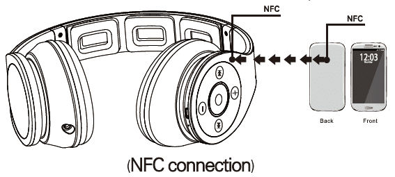 2. The NFC operation of mobile phone and Bluetooth headset takes time, Please don’t connect via NFC again before Bluetooth function of mobile phone and Bluetooth headset had completely switched off or on.