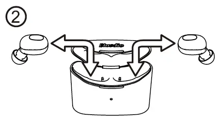 Headset charging: put the headset back in the charging box and close the lid. When charging, the charging box blue light is turned on, and when it is fully charged, the blue light is turned off.