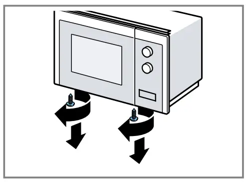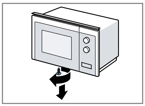 - Secure the built-in frame on the microwave base with the two outer screws.