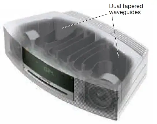 Over fourteen years of research by Bose Corporation brings you the benefits of award-winning proprietary acoustic waveguide speaker technology. Using this technology, a tube efficiently transfers energy from a small speaker to the outside air over a wide range of low frequencies. And, long waveguides, folded into intricate patterns, fit into products small enough to be placed comfortably in your home. Your Wave® Music System IV features dual tapered waveguide speaker technology, connecting two speakers to two 26″ tapered waveguides which combine to deliver performance well beyond the size of the system.