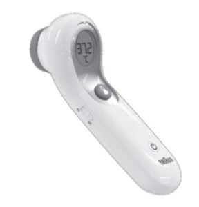 Thank you for purchasing the Braun No touch + forehead thermometer (NTF 3000). This thermometer is a high-quality product incorporating the latest technology and tested in accordance with international standards. With its unique technology, the product can provide a stable, accurate reading with each measurement. The thermometer performs a self-test every time it is switched on to always guarantee the accuracy of measurements. The No touch + forehead thermometer is intended for the intermittent monitoring of human body temperature in the home. It is intended for use on people of all ages except pre-term babies or very small (small-for-gestational age) babies.