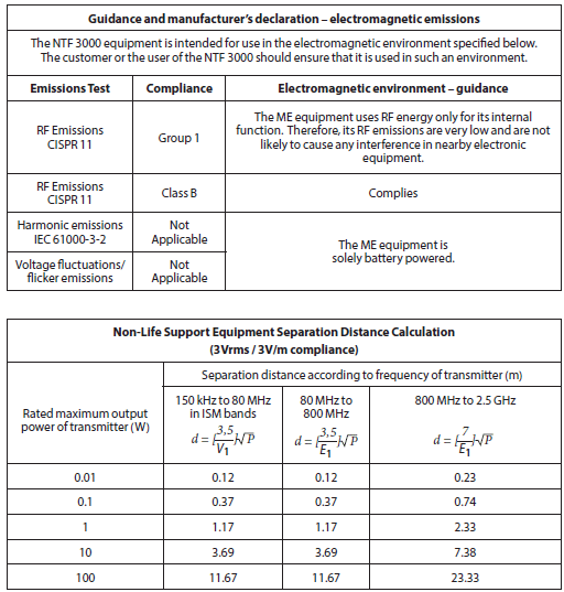 NOTE: Do not use this device in the presence of electromagnetic or other interference outside the normal range specifi ed in EN 60601-1-2.